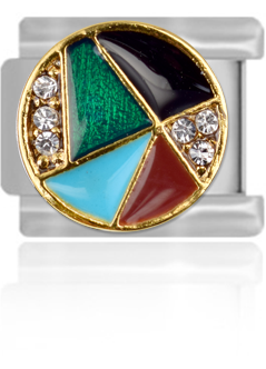 Ogniwko w kształcie koła, a w środku wielokolorowa mozaika, wysadzana czeskimi kryształkami